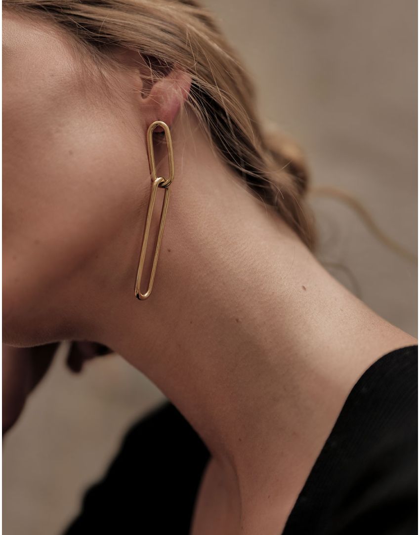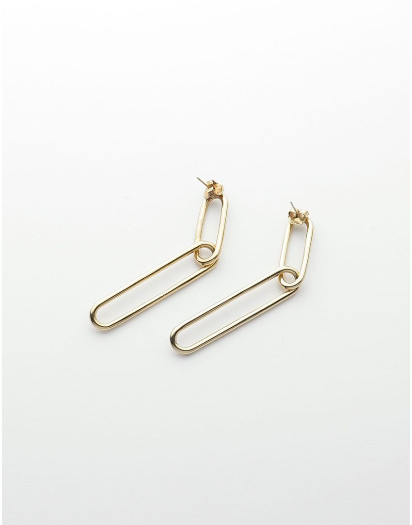 Arete dorado eslabones. Cierre de poste. Baño de oro de 22 k. Largo: 7 cm