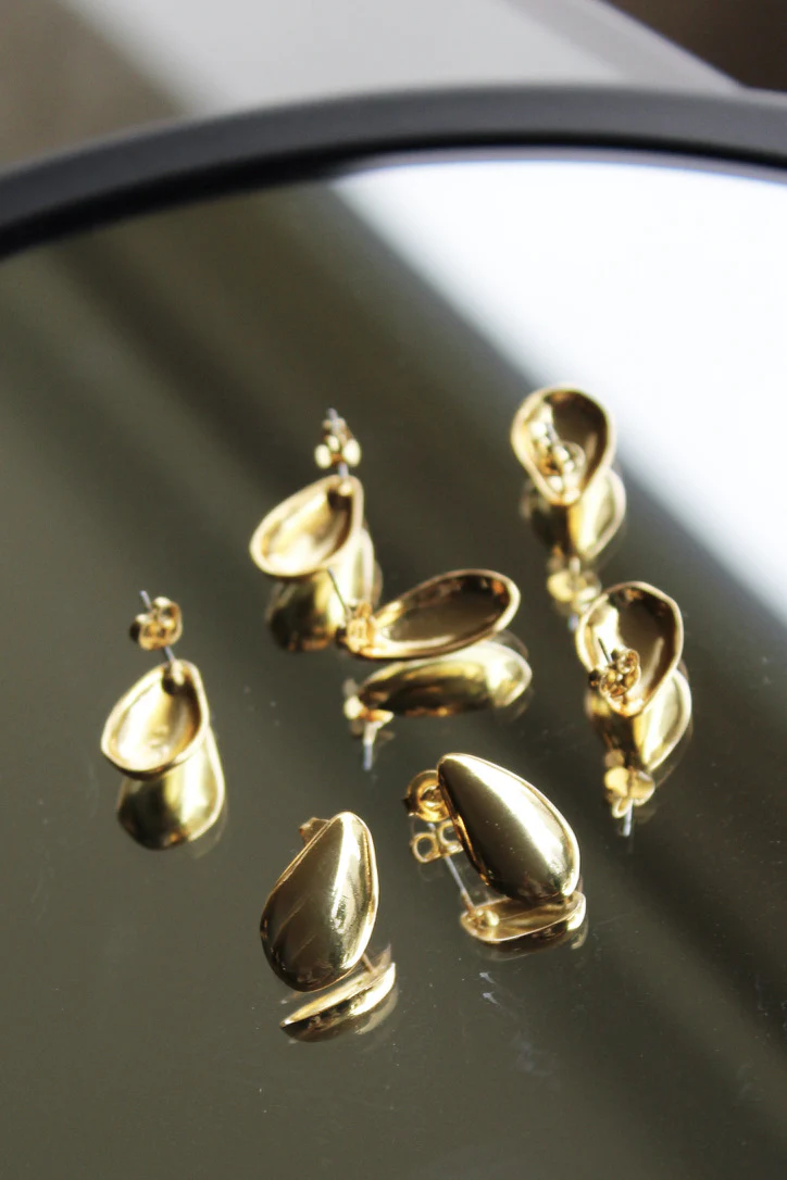 Aretes puffy y tapitas elaborados en bronce con baño de oro 22k