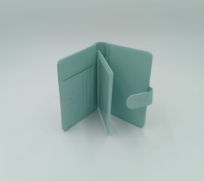 Billetera en cuero, con moderno diseño y combinación de color. Con protección anti robo magnético de chip.
